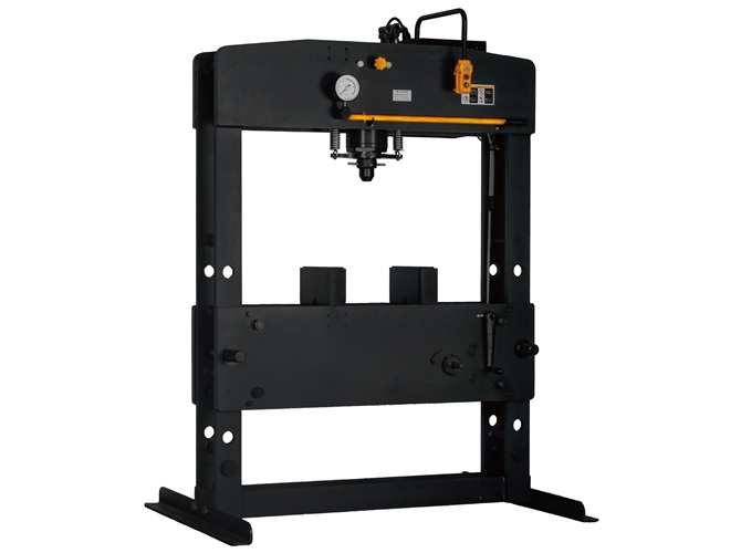 早送りピストンを搭載することでラムの下降速度が4倍! | 歪の矯正、シャフトの曲線、板の曲げ、ブッシュ類やベアリング類の脱着など幅広い用途に使用可能!