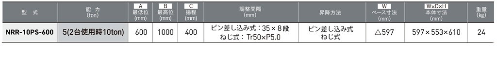型番:NRR-10PS-600、